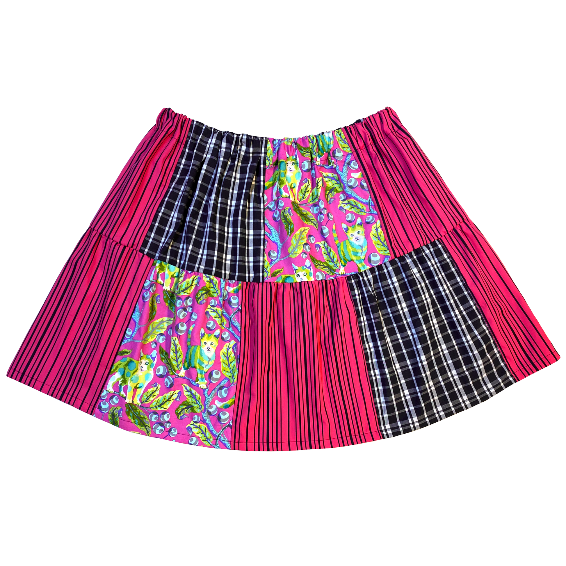 Ruutukuosien seassa seikkailevat värikkäät kisutilkut. Puuvillakankaat vintagea ja tekstiiliteollisuuden ylijäämää. Ommeltu Tampereen Tammelassa ★ ˎˊ˗