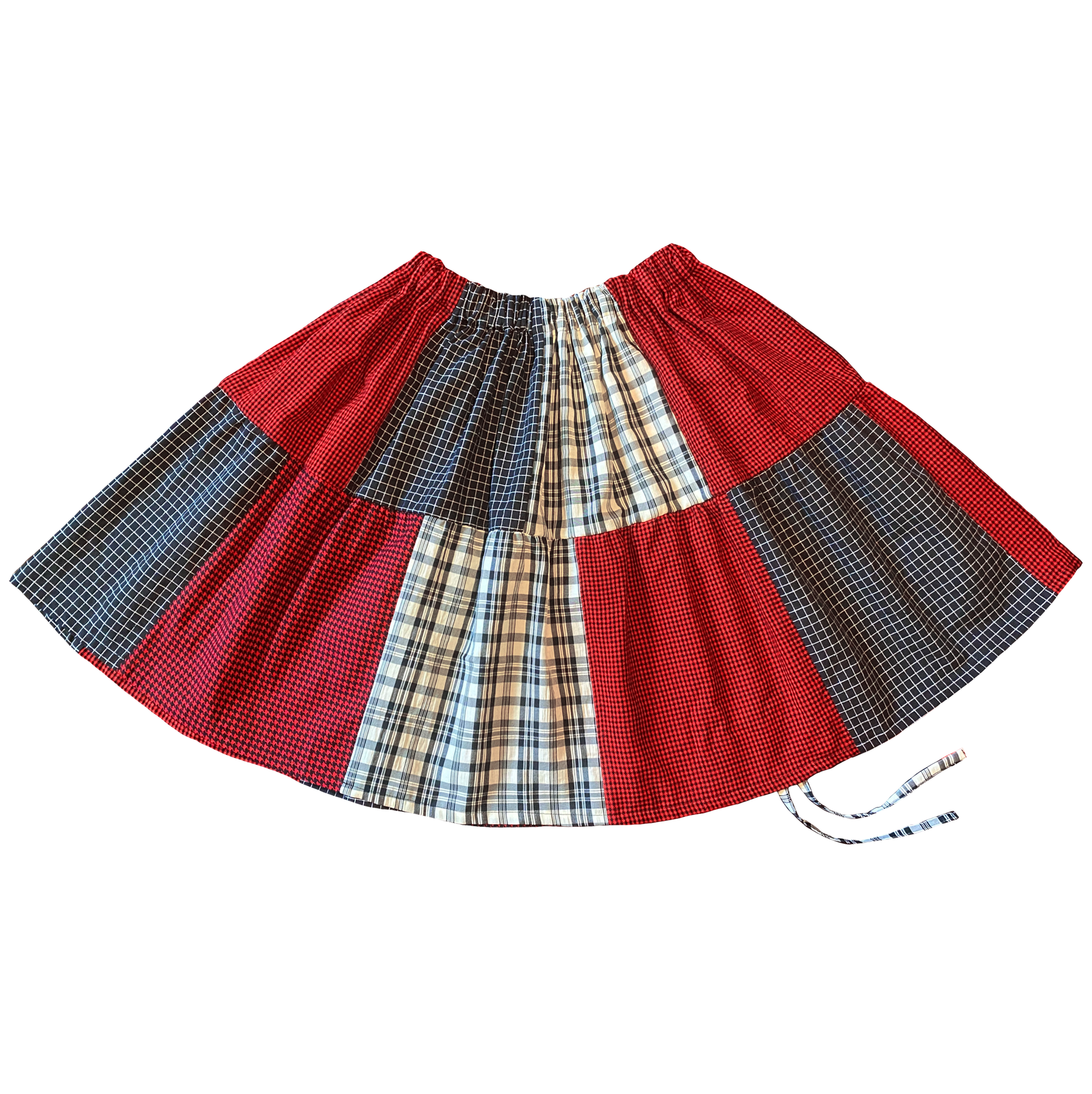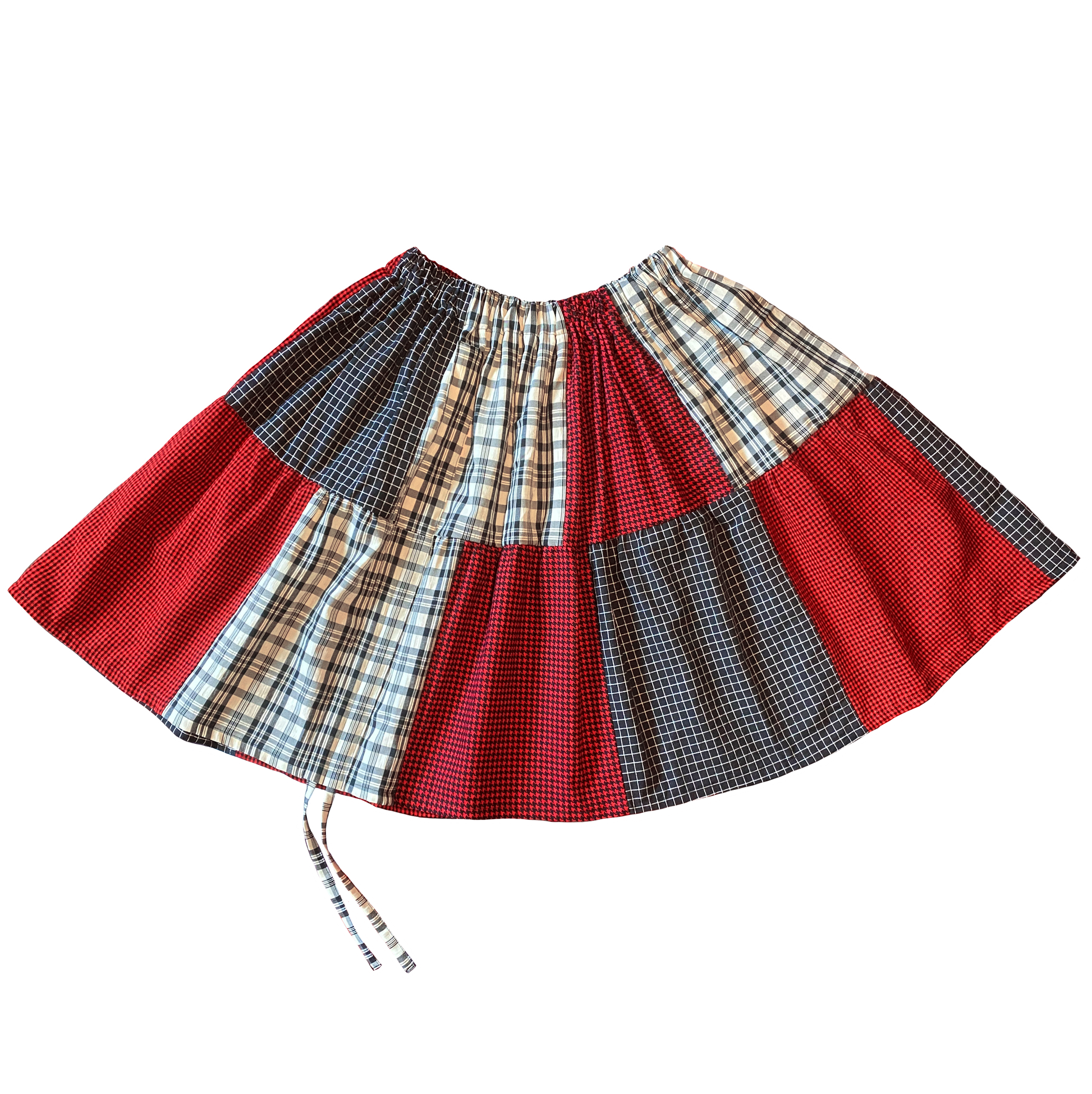 Ruutua ja kukonaskelkuviota punaisen ja mustavalkean sävyissä. Puuvilla- ja sekoitekankaat vintagea ja tekstiiliteollisuuden ylijäämää. Ommeltu Tampereen Tammelassa ★ ˎˊ˗